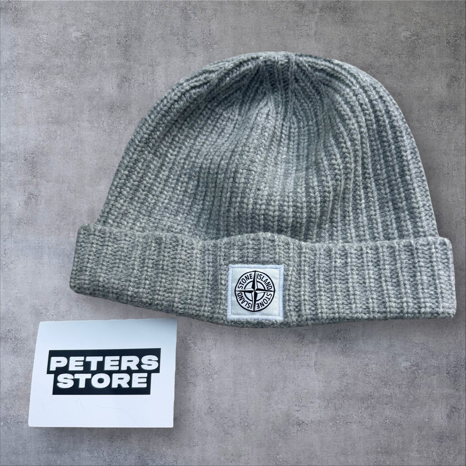 Search tags: Stone Island Beanie, Grey Knit Hat, Designer Menswear
